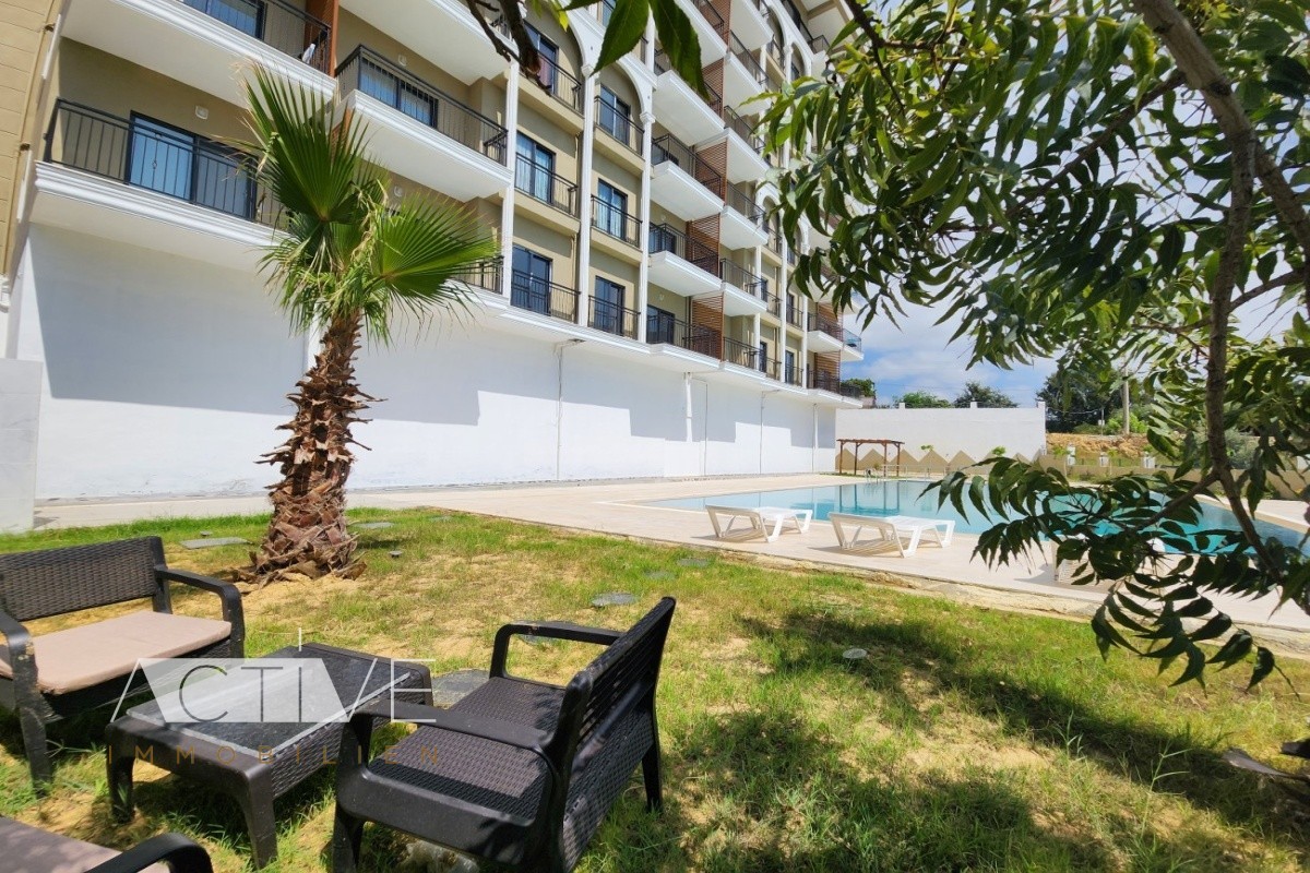 Apartment 42qm in Alanya, Erstbezug, unmöbliert, 1 Schlafzimmer, 1 Bad, Pool, seitlicher Meerblick