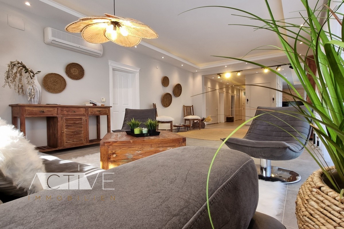 Draußen leben, drinnen genießen. Hier finden Sie alles auf einer Ebene mit stilvoller Einrichtung. 2022 wurde dieses Haus komplett umgebaut.