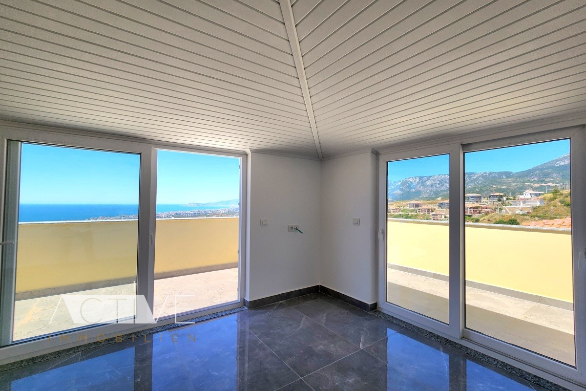 Penthaus 145qm in Alanya mit Meerblick, Neubau, 2 Schlafzimmer, 2 Bäder, Pool, 2 Etagen, 2 Dachterrassen