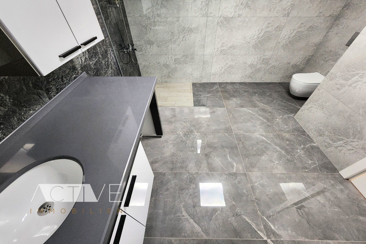 Die Bäder wurden mit schönen geräumigen Duschen versehen, so das man genügend Platz hat. Die Bäder verfügen außerdem über eine elektrische Fußbodenheizung. Im Kellerabteil im