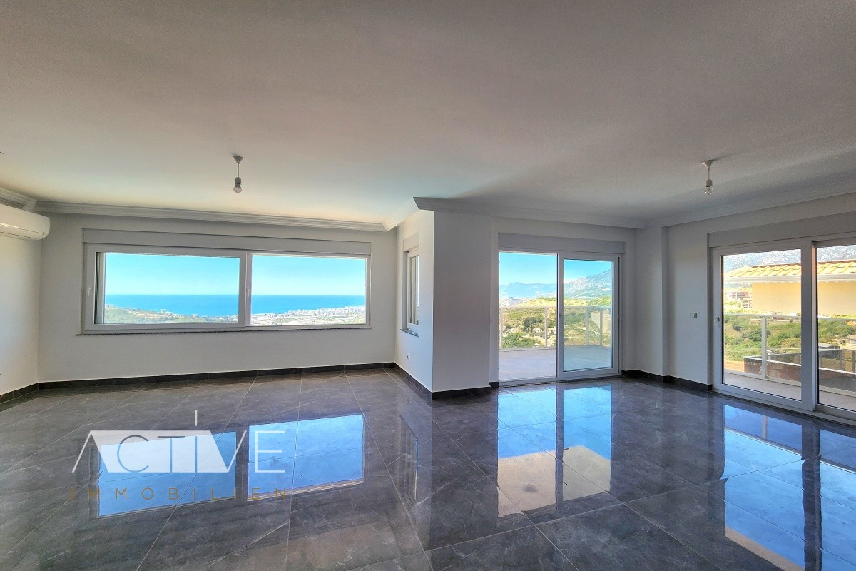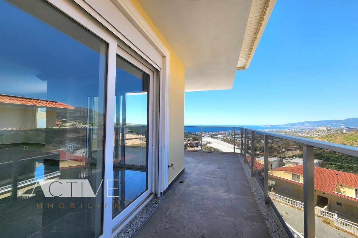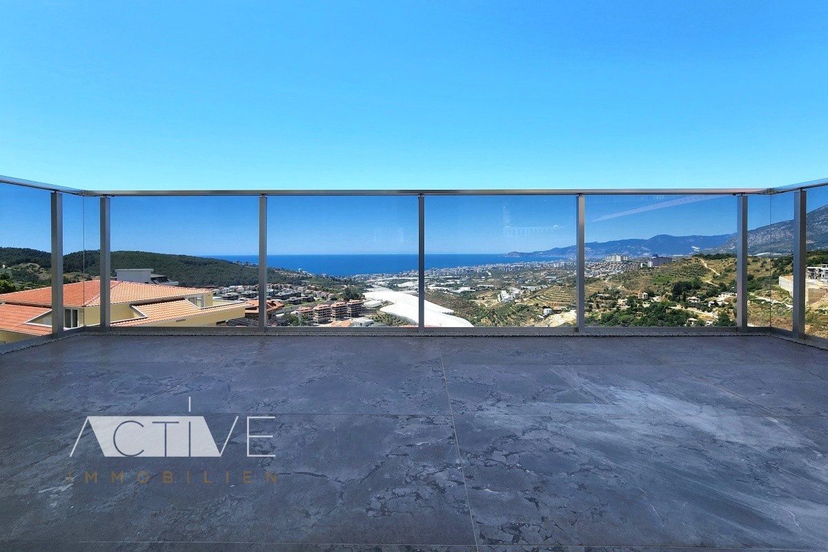 Die 145qm Penthauswohnung mit 2 Etagen in Alanya-Kargicak, verfügt über einen Balkon und zwei große Dachterrassen, von der Sie die ganze Bucht von Alanya und das Taurusgebirge überblicken können.