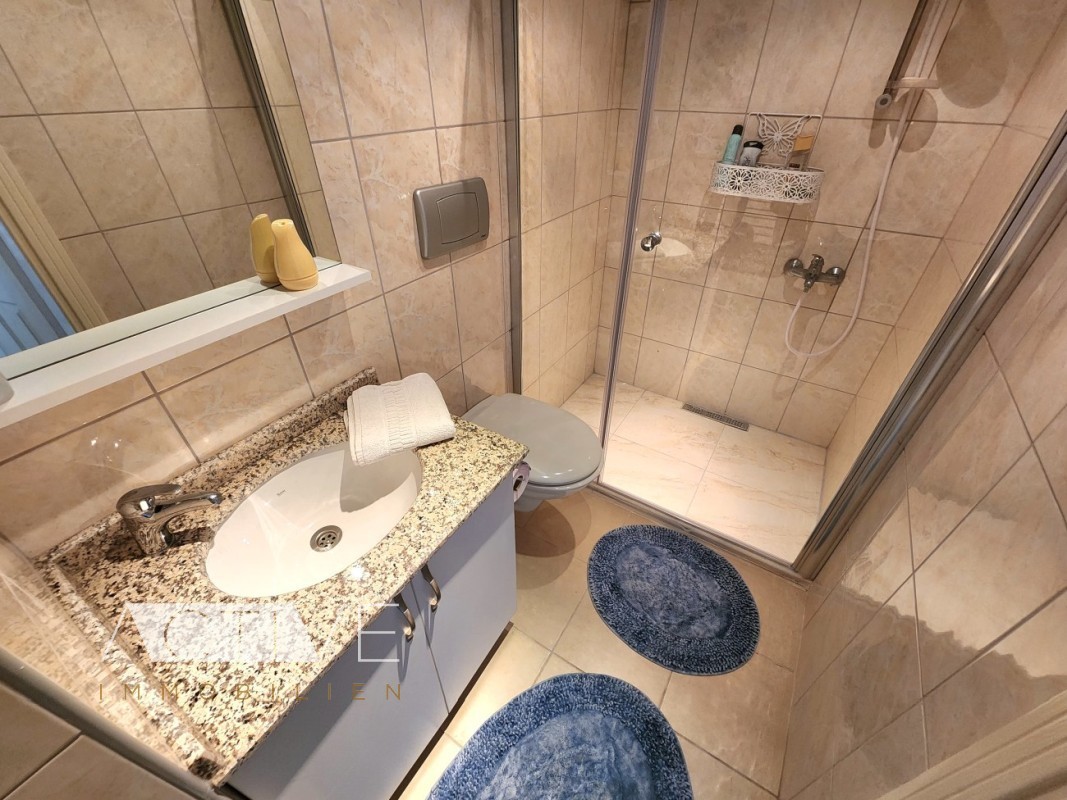 Die Wohnräume sind sehr hell, durch die großen Fenster dringt viel Licht hinein. Sie haben eine sehr große Wohnfläche, sodass sie viel Platzhaben. Die Küche ist im amerikanischen Stil zum Wohnzimmer und bietet Ihnen genügend Stauraum für Ihre Küchenutensilien. In allen Räumen wurden helle große Fliesen verlegt. Die Badezimmer sind ebenfalls sehr modern ausgestattet.