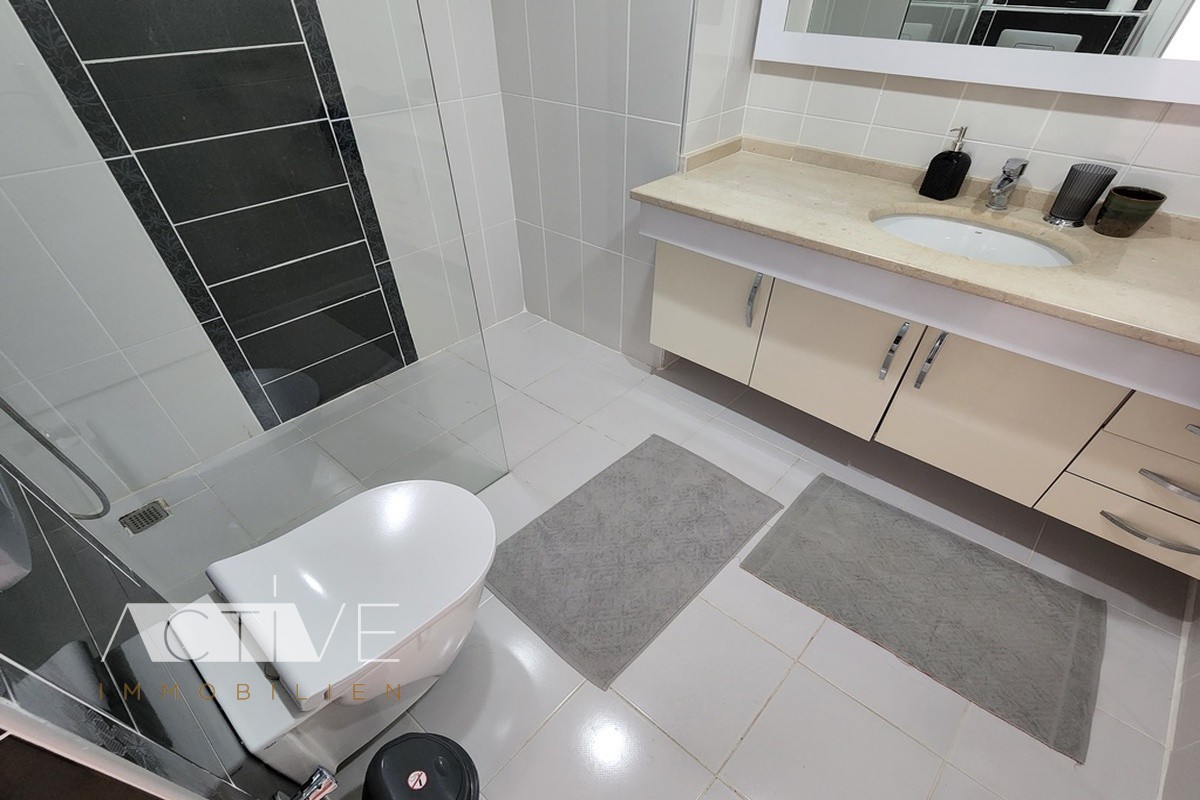 Die helle Penthauswohnung wird Ihnen möbliert angeboten und sind E-Geräte in der Küche und Klimaanlagen in allen Räumen ebenfalls bereits vorhanden. Der Boden ist mit hellem Granitfliesen ausgestattet.