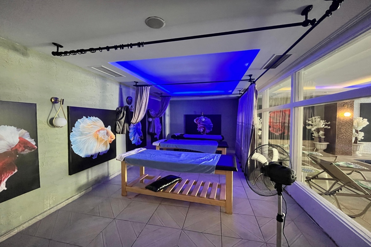 Der Gemeinschaft stehen folgende Einrichtungen zur Verfügung: Sauna, Hamam, Swimmingpool, Massage, Spielplatz, Generator, und ein vollausgestatteter Fitnessraum. Ein Hausmeister kümmert sich um die Belange der Anlage.