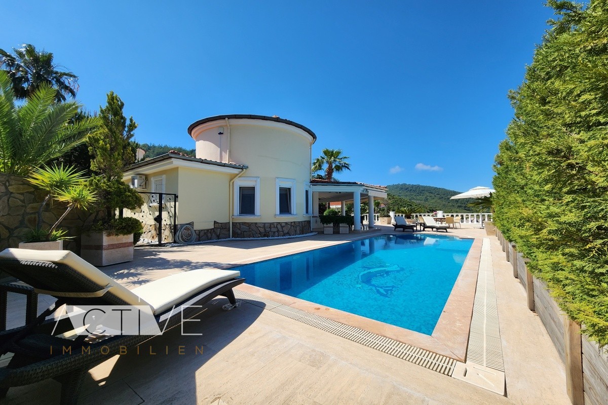 Villa 160qm mit Meerblick in Alanya, privater Pool, 3 Schlafzimmer, 3 Bäder, 700qm Grundstück