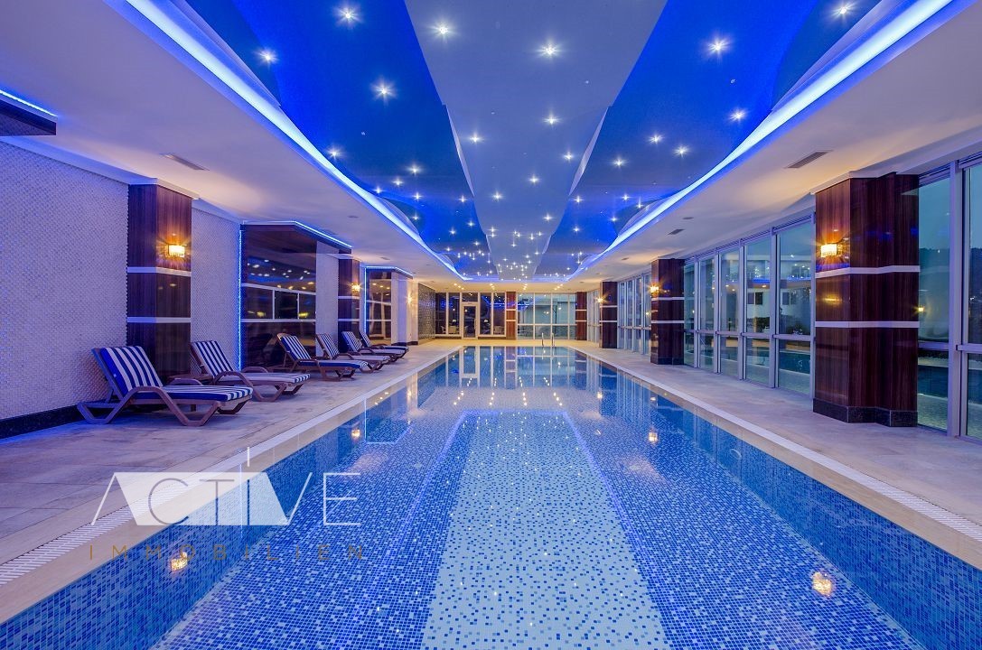 Wohnung 65qm in Alanya mit Meerblick, luxuriöse Anlage, 1 Schlafzimmer, 1 Bad, Pool, Spa, Hallenbad
