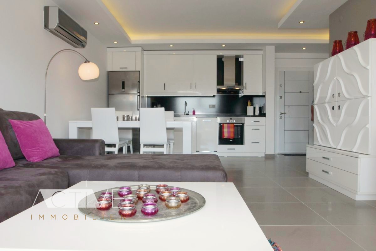 Die 65qm Wohnung in Alanya-Kargicak verfügt über eine traumhafte Sicht über Meer und Gebirge, welche Sie von Ihrem Balkon aus geniessen können!