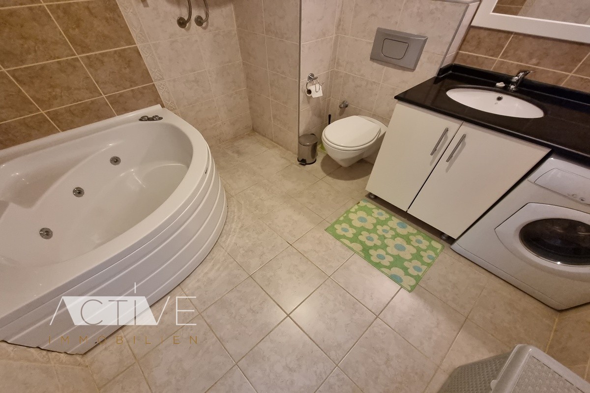 Die 85qm Wohnung in Alanya-Avsallar lässt nichts zu wünschen übrig. Die Fenster sind aus Kunststoff und schon mit Rollläden ausgestattet, die Fußböden sind mit wunderschönen hellen Marmor ausgestattet. Bei der Quadratmeterverteilung wurde darauf geachtet die Zimmer großzügig zu gestalten.